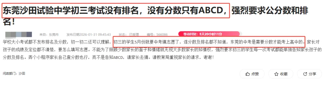 希望各位领导让分数和排名回归应有的参考价值,为孩子的升学之路提供清晰指引,不能因为个别家长的投诉,而不顾大部分人的民意。