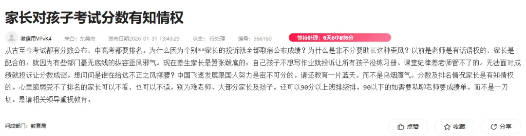 晚上刷手机,一条本地新闻却突然跳上热搜,标题直指“考试成绩”——东莞有家长在“阳光问政”平台投诉:老师竟把分数写在了试卷上!
