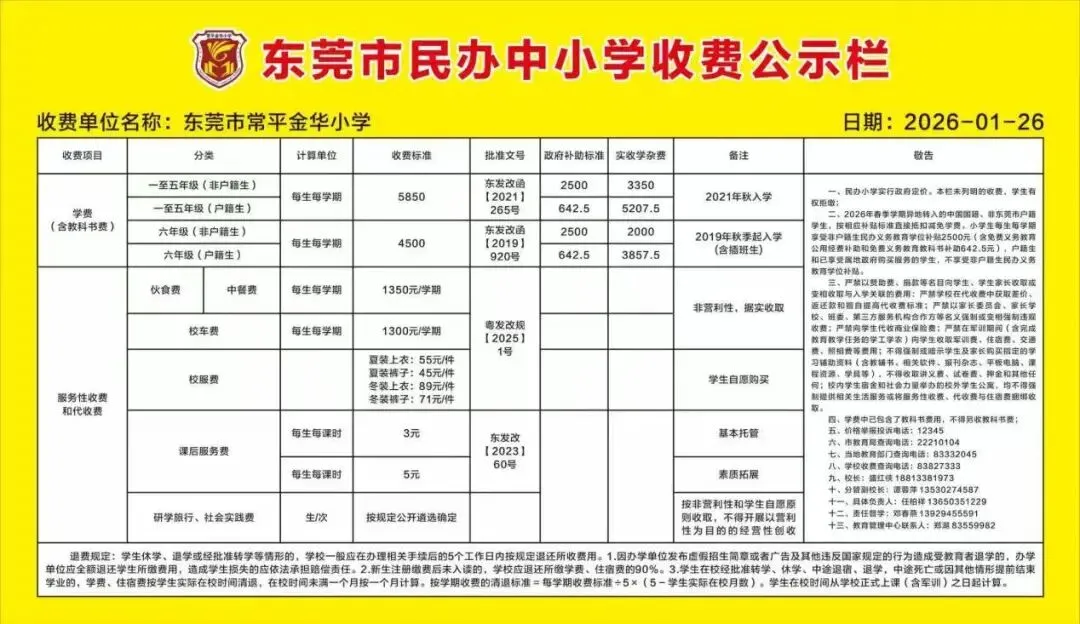 2.本政策自2026年春季学期起执行,收费栏以外的收费项目家长有权拒交,后续如有调整将另行通知。 感谢您的理解与配合!