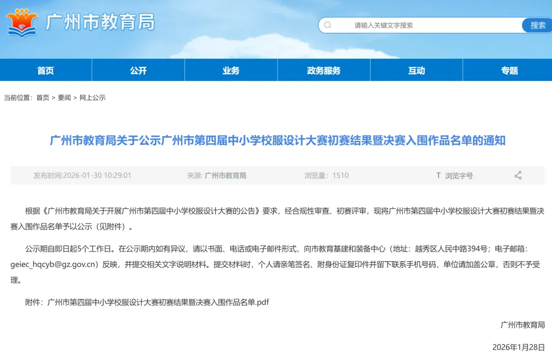 广州市教育局公示了