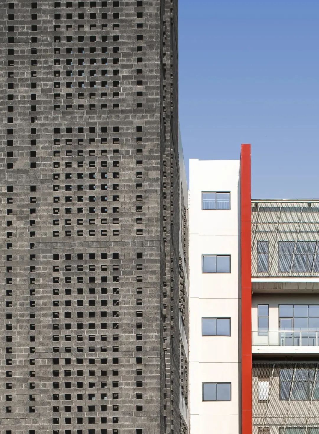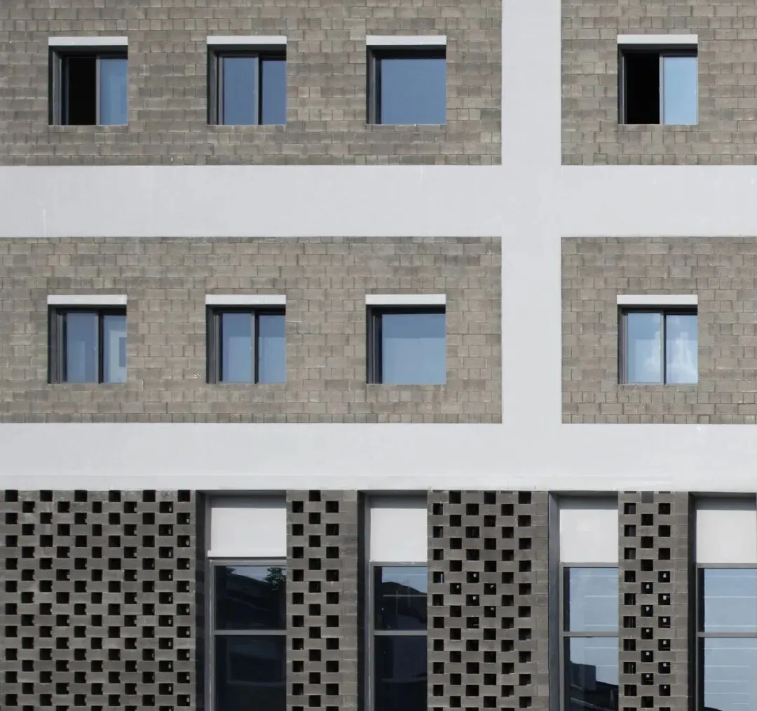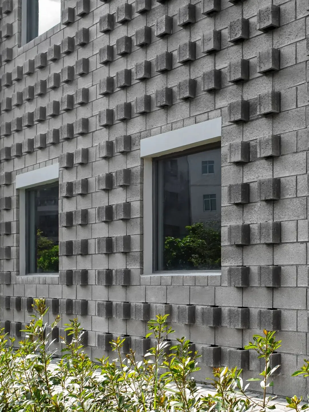 通过直接暴露砌块质感并呈现砌筑方式的丰富组合,设计实现了对当地建造传统的现代转译,并以最低成本展现出纯粹质朴的材料美学。