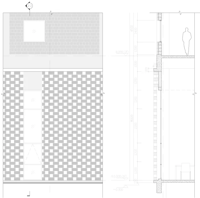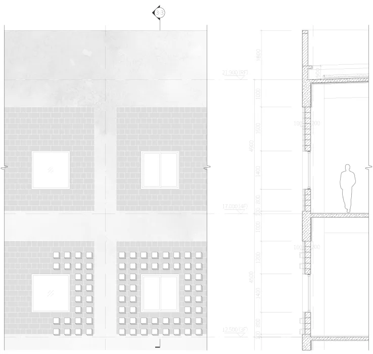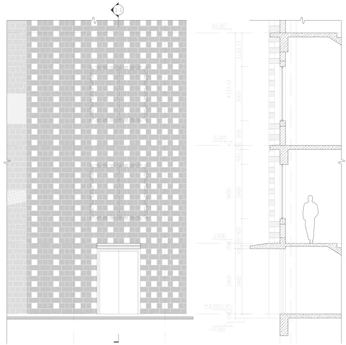 单一长砖平砌+镂空花砖做法节点图 ©JJP