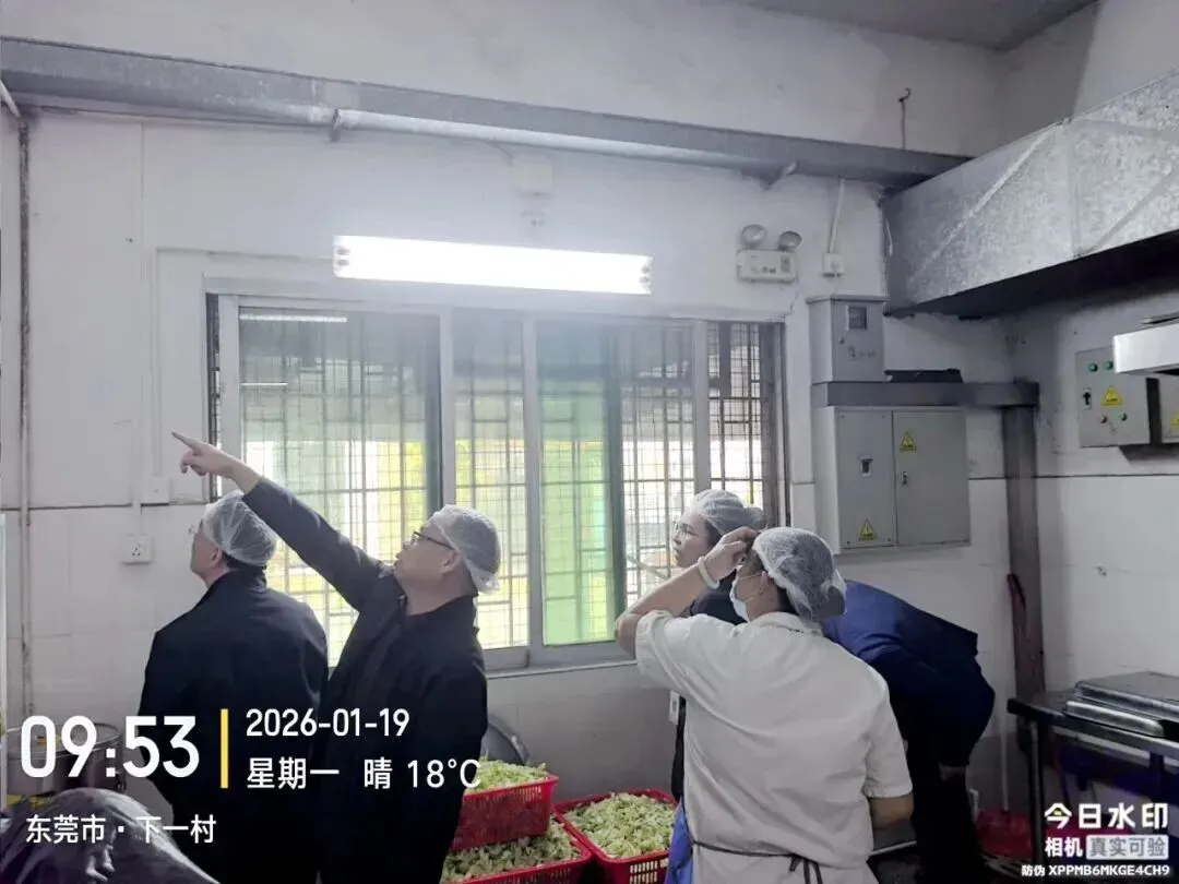 1月19日,学校膳食领导小组对食堂进行“体检”,严查环境卫生与食材储存,筑牢食品安全屏障。