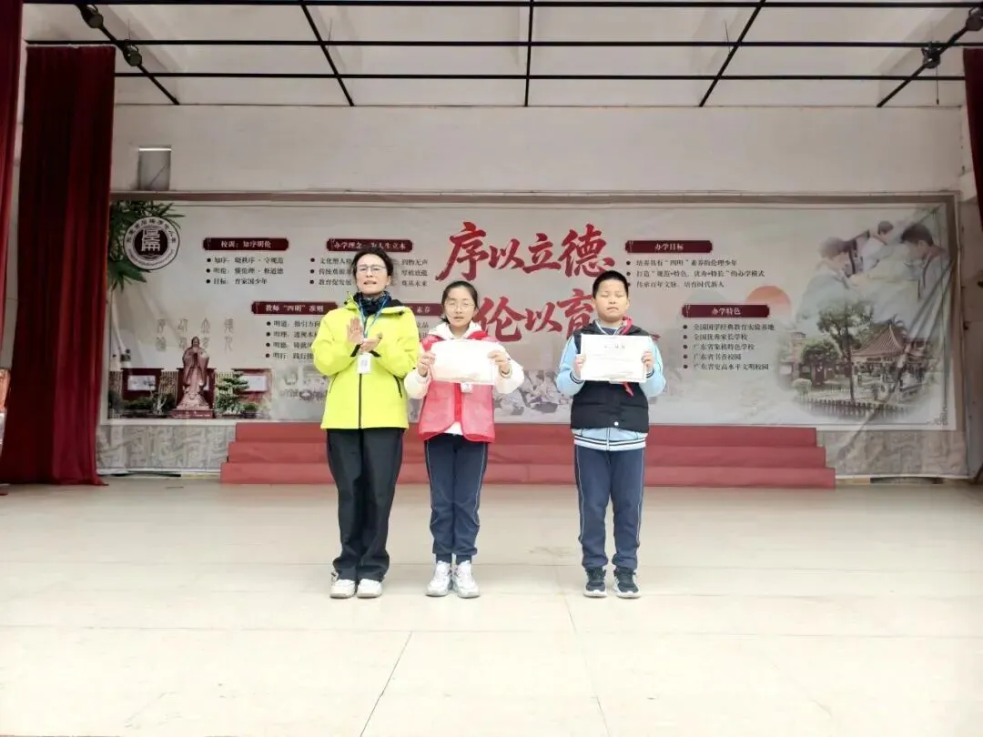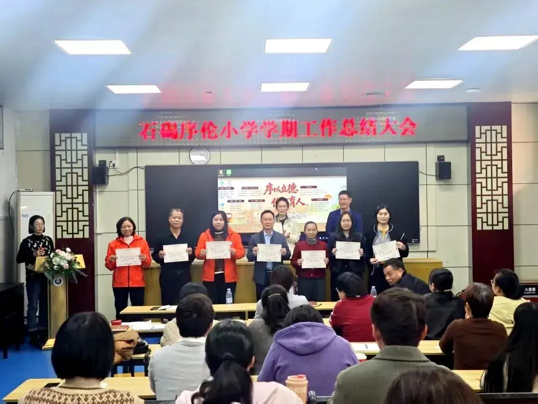 1月22日,学校在序伦广场举行颁奖礼,覆盖值日干部、广播员及多项镇级赛事获奖者,颁发证书以营造积极进取的校园氛围。