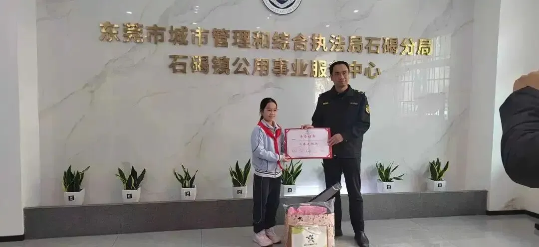 我校程钰琳同学在2025年东莞市生活垃圾分类五大赛中获少儿演讲决赛优胜奖。市城管局石碣分局特举办颁奖仪式,表彰其为镇、校争得的荣誉。