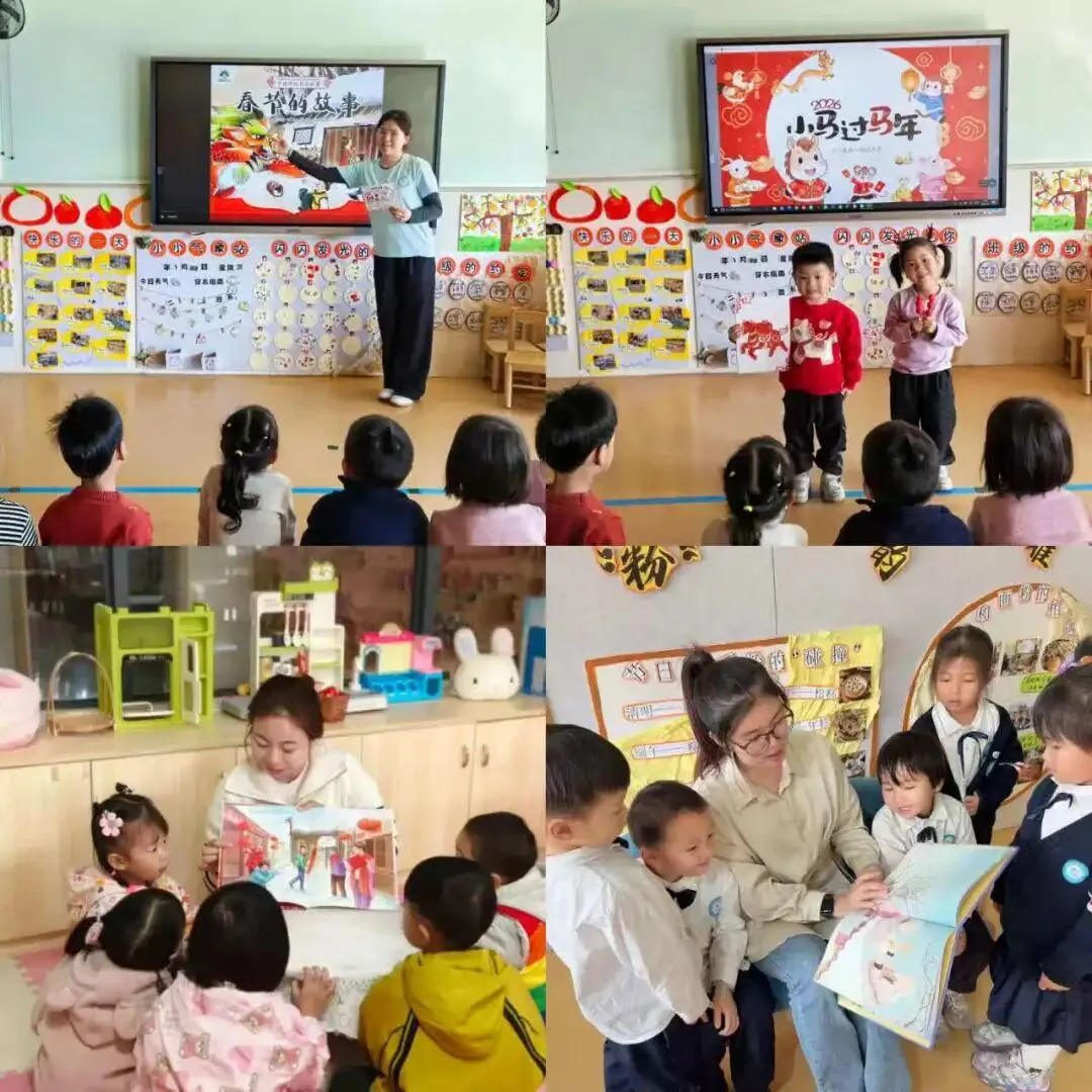 小班宝贝们围坐在一起,听老师讲年兽的故事,阅读新年绘本,还在欢快的歌声中自主表演,用稚嫩的童声唱出对新年的期盼。