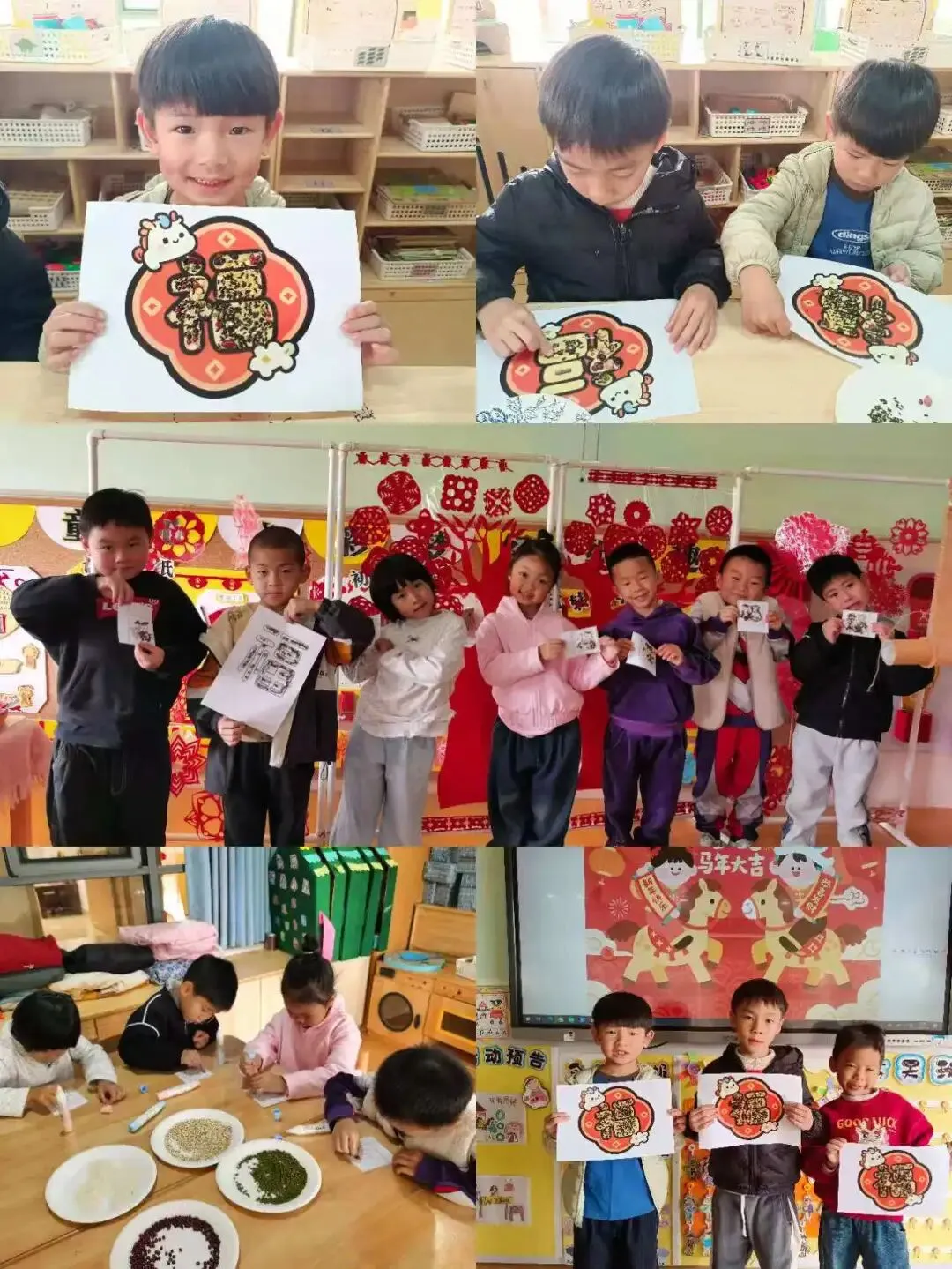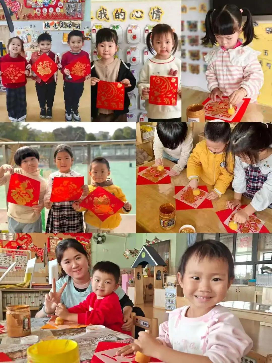 宝贝们拓印出一幅幅色彩鲜艳的新年画,红色与金色的颜料在宣纸上晕染出吉祥的图案。