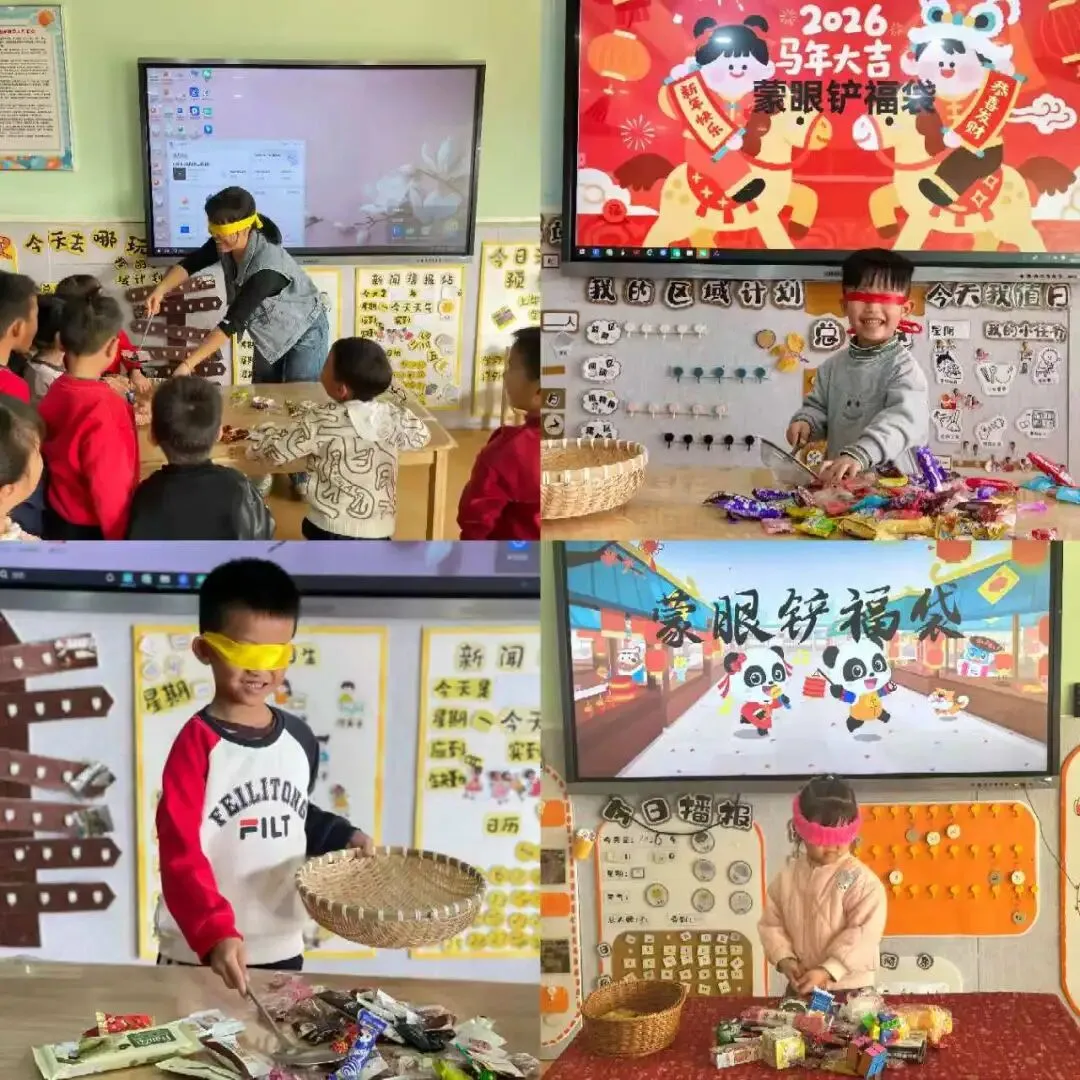 戴上眼罩,手拿锅铲,小心翼翼地铲起桌上的红包和糖果,让我们一起在欢笑声中感受“盲盒”般的惊喜!