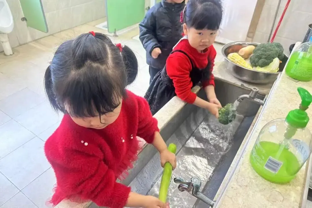 活动开始前,全园师幼进入到忙碌的食材准备阶段:洗菜、切菜、串串、烹煮...每一道工序虽然繁杂,但是孩子们的热情不减,齐心协力为我们的团圆宴奉献自己的力量。