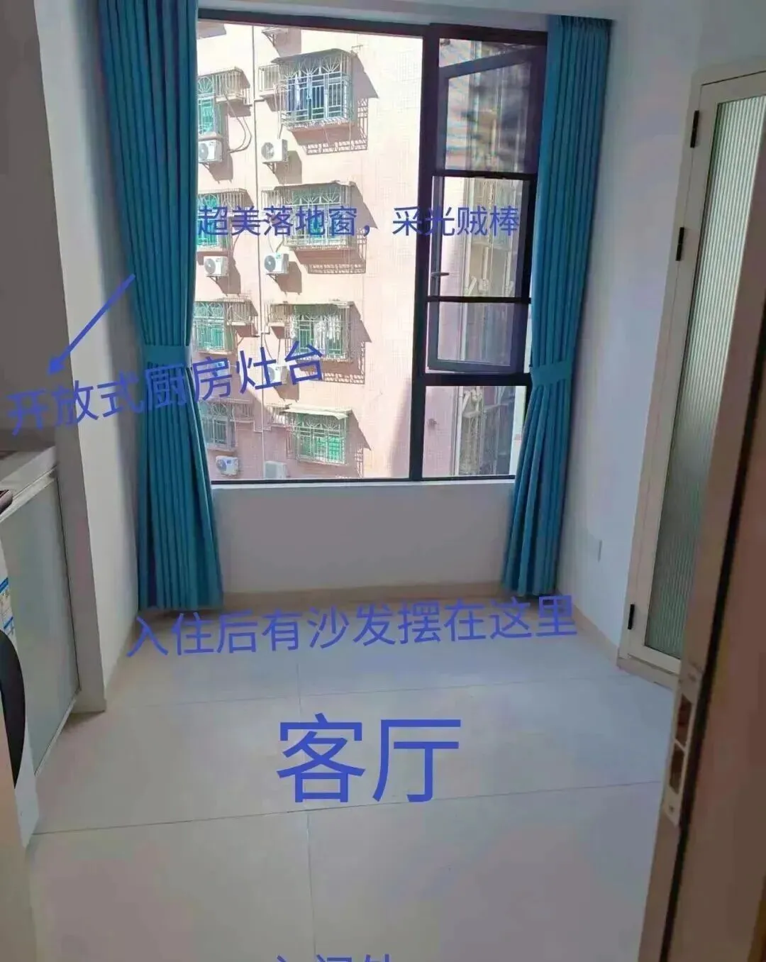 【户型】精装修公寓一房一厅,电梯5楼,带开放式厨房+凸窗式阳台+客厅落地窗+独立卫生间,采光超好,一楼也有门禁监控防护,家电都是低能耗的