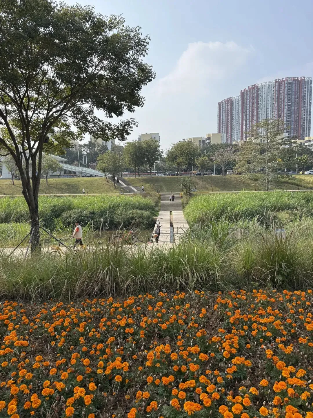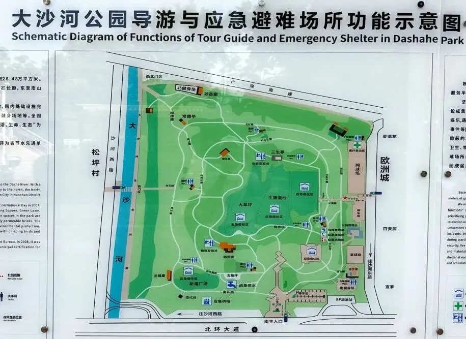 因大沙河公园在大沙河生态长廊段内,非节假日是可以骑行的。于是骑车去了公园。