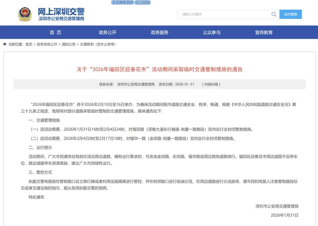 为保障福田花市顺利举行