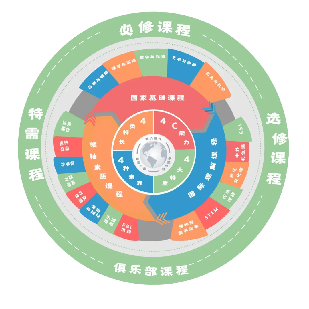 学校原创由国家基础课程(Chinese National Basic Curriculum)、国际理解课程(International Culture Curriculum)和领袖素质课程(Leadership Curriculum)三个板块构成的CIL融合型课程体系。此外,学校还创设了诸多特色课程,比如STEM创新课程、ESL特色课程、“移动学习生态系统”课程等,在集体教育场景中极大化地发现个体、发展个体,实现学生外在目标向内在驱动力的转化,满足个性化成长所需。