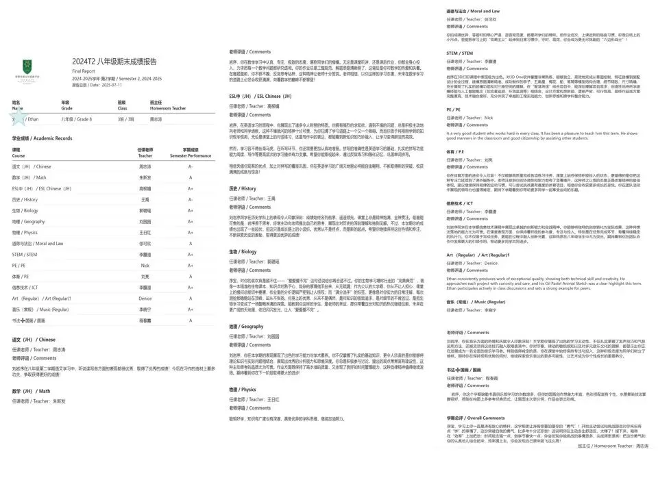 八年级分流:家长决定好升学方向后,中考方向和国际方向的学生分流,设置多元特需课程,个性化定向培养。