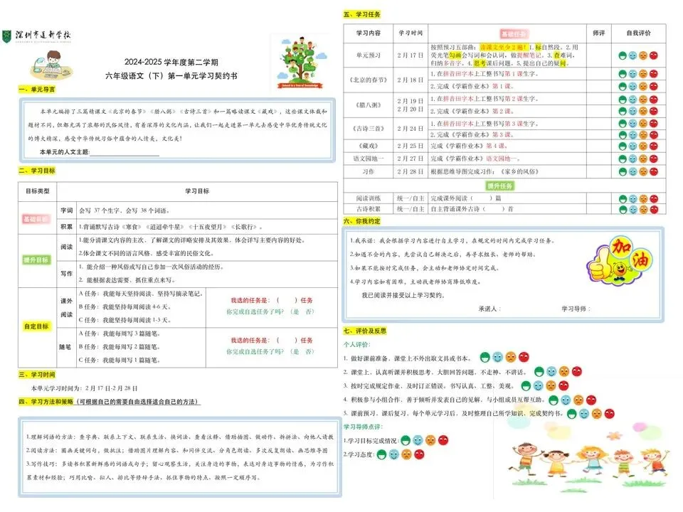 学习契约是老师与学生共同制定的、符合学生实际学业水平的、适合学生个别化学习的、能体现学生自主性和选择性的学习合同。在学习目标、学习内容相对统一的前提下,学生可以自主选择学习难度、学习进度、完成契约任务的时间和学习伙伴。