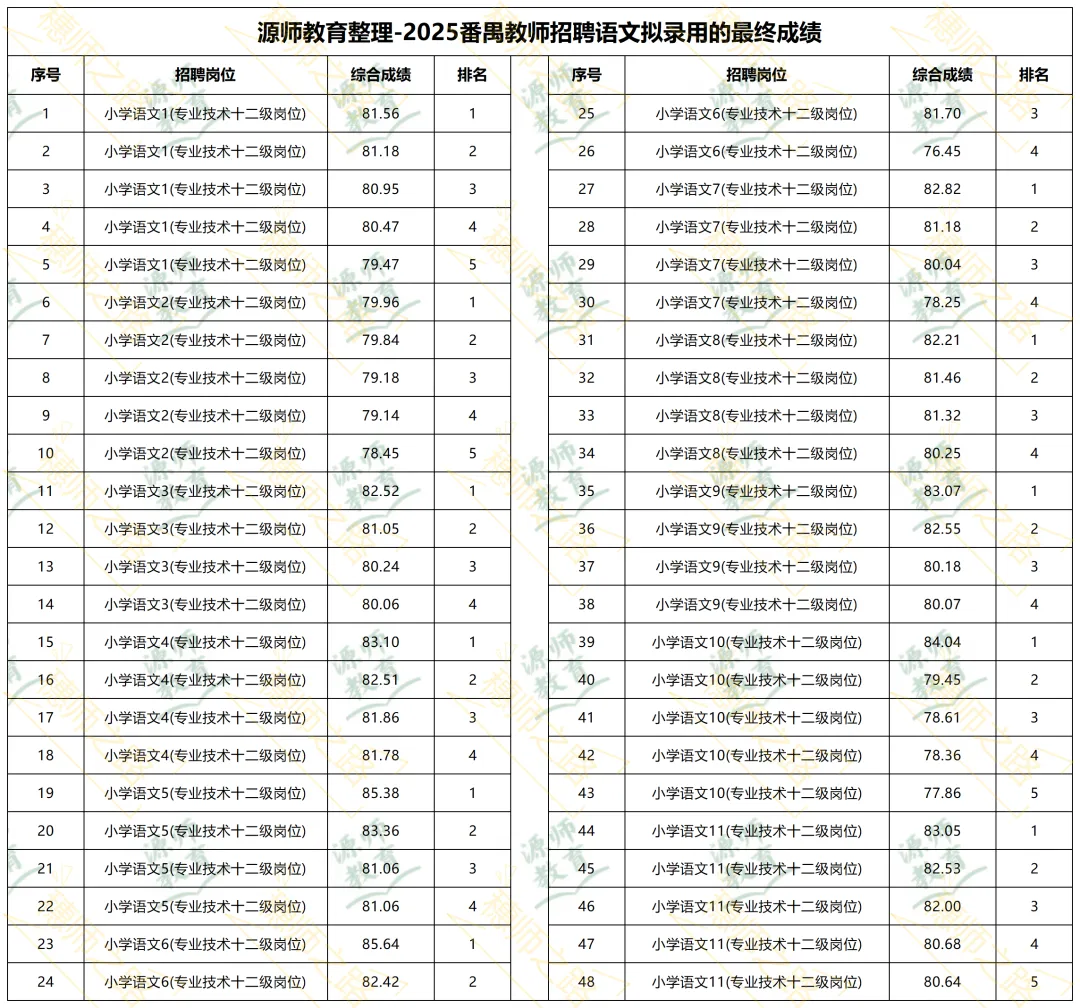 番禺区教师招聘没有单独公布笔试成绩和面试成绩,都是最后的综合成绩。