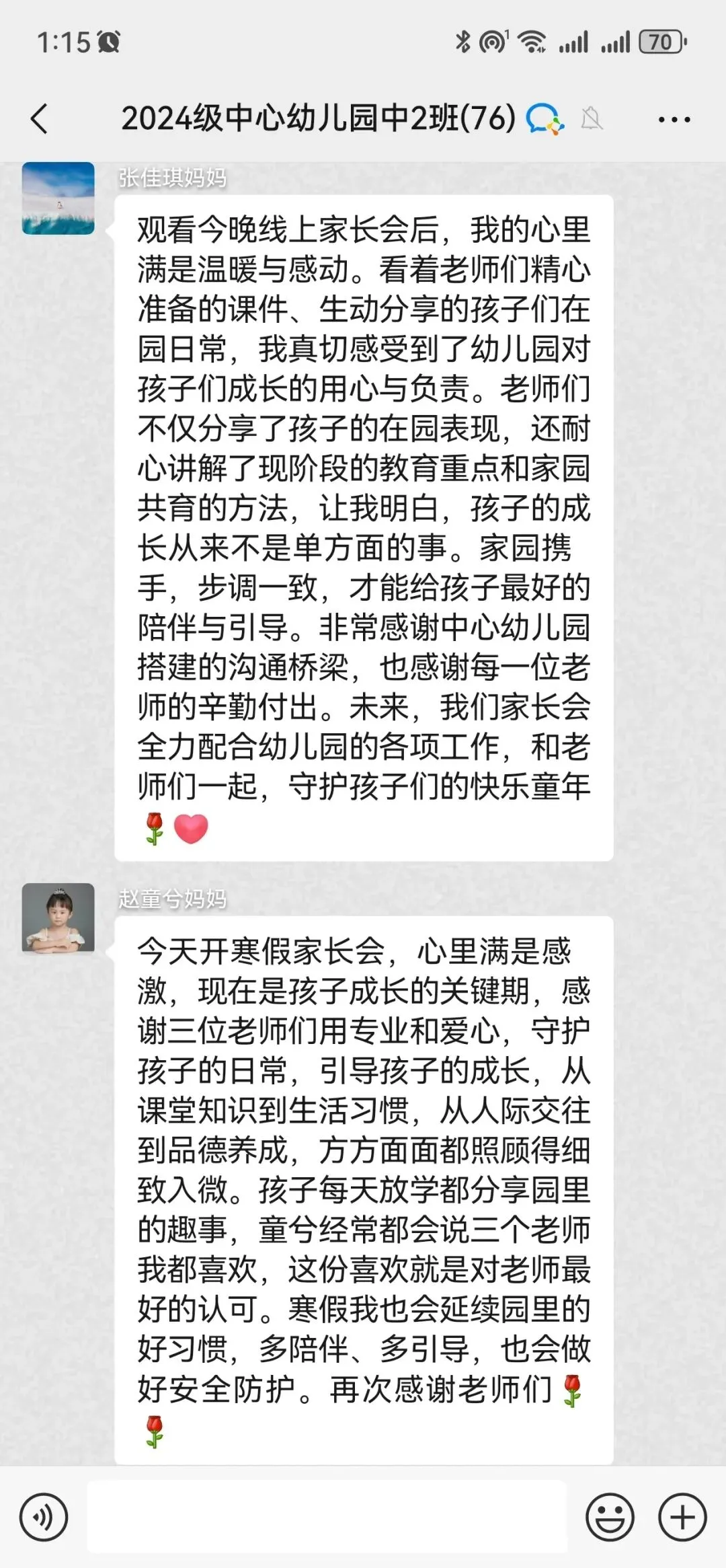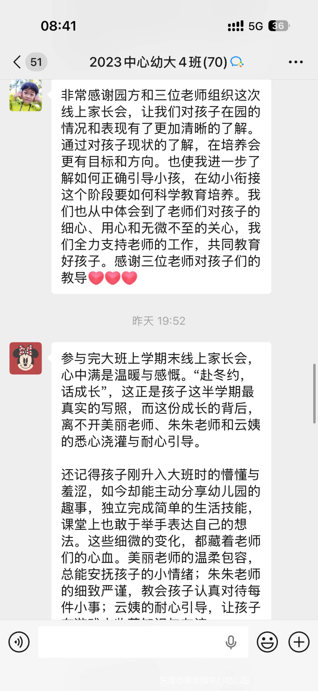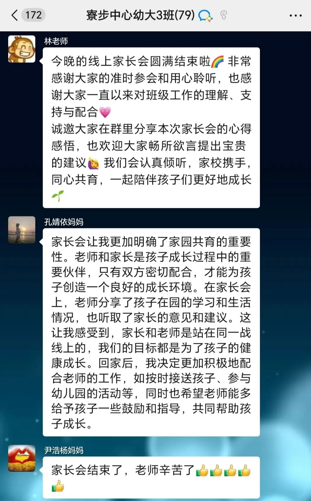 会上,教师系统回顾了本学期幼儿在习惯养成、能力发展等方面的成长足迹,明确了下学期学习重点与方向,并暖心附上假期安全温馨提示。家长们热情参与、互动踊跃,会后纷纷通过微信群留言,真挚表达对幼儿园工作的认可与感谢。这场云端相聚,既见证了孩子的成长蜕变,又凝聚了家园共育的智慧与温情,让教育在双向奔赴中绽放出更温暖的光芒。