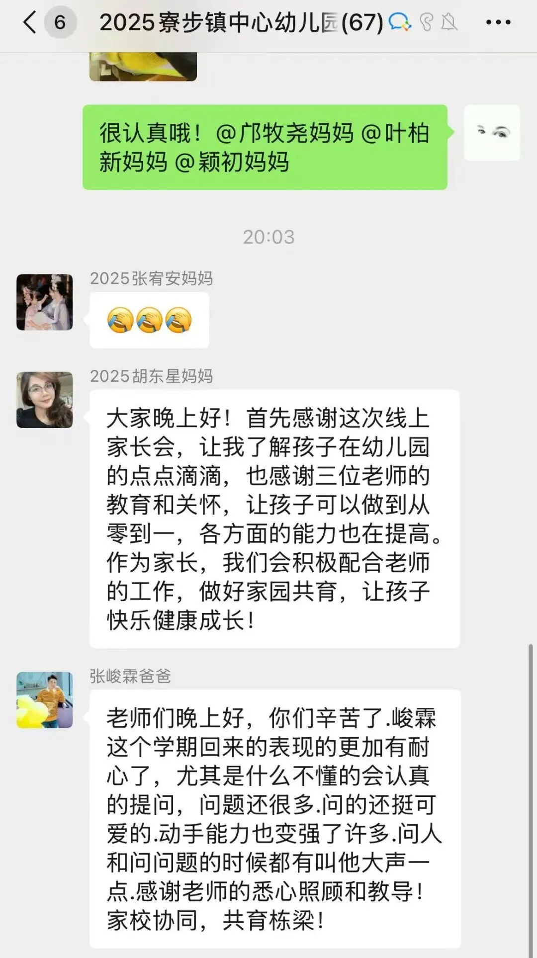 隔屏聚爱,云端共育。这场温暖人心的线上家长会上,家长们全程专注聆听、积极互动,隔着屏幕分享育儿心得、探讨教育困惑,在思想交流中凝聚起家园共育的共识与力量。会后,众多家长反馈此次线上会议内容充实、重点明晰,既全面了解了孩子在园成长情况,又收获了实用育儿方法,可谓满载而归,收获满满。