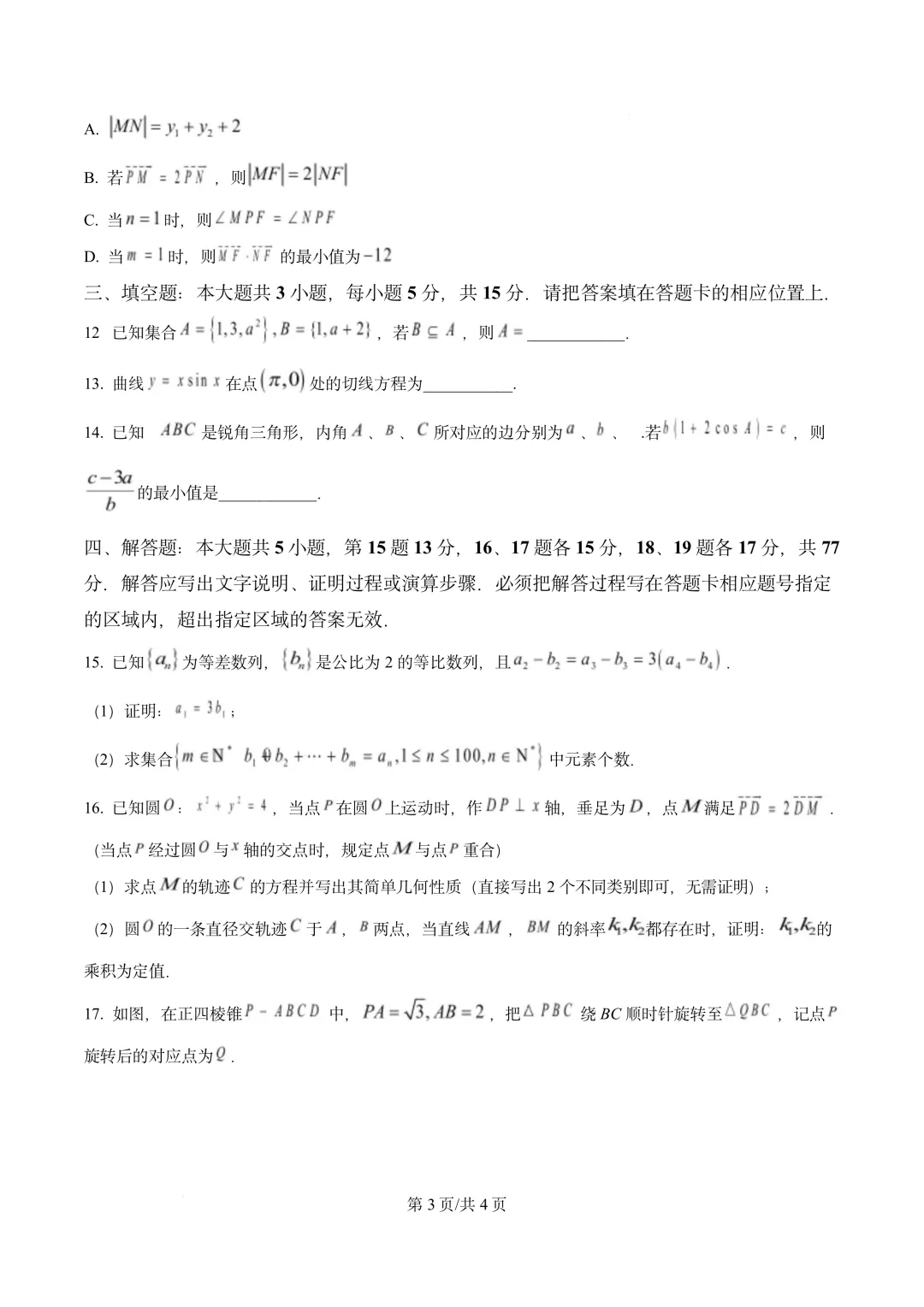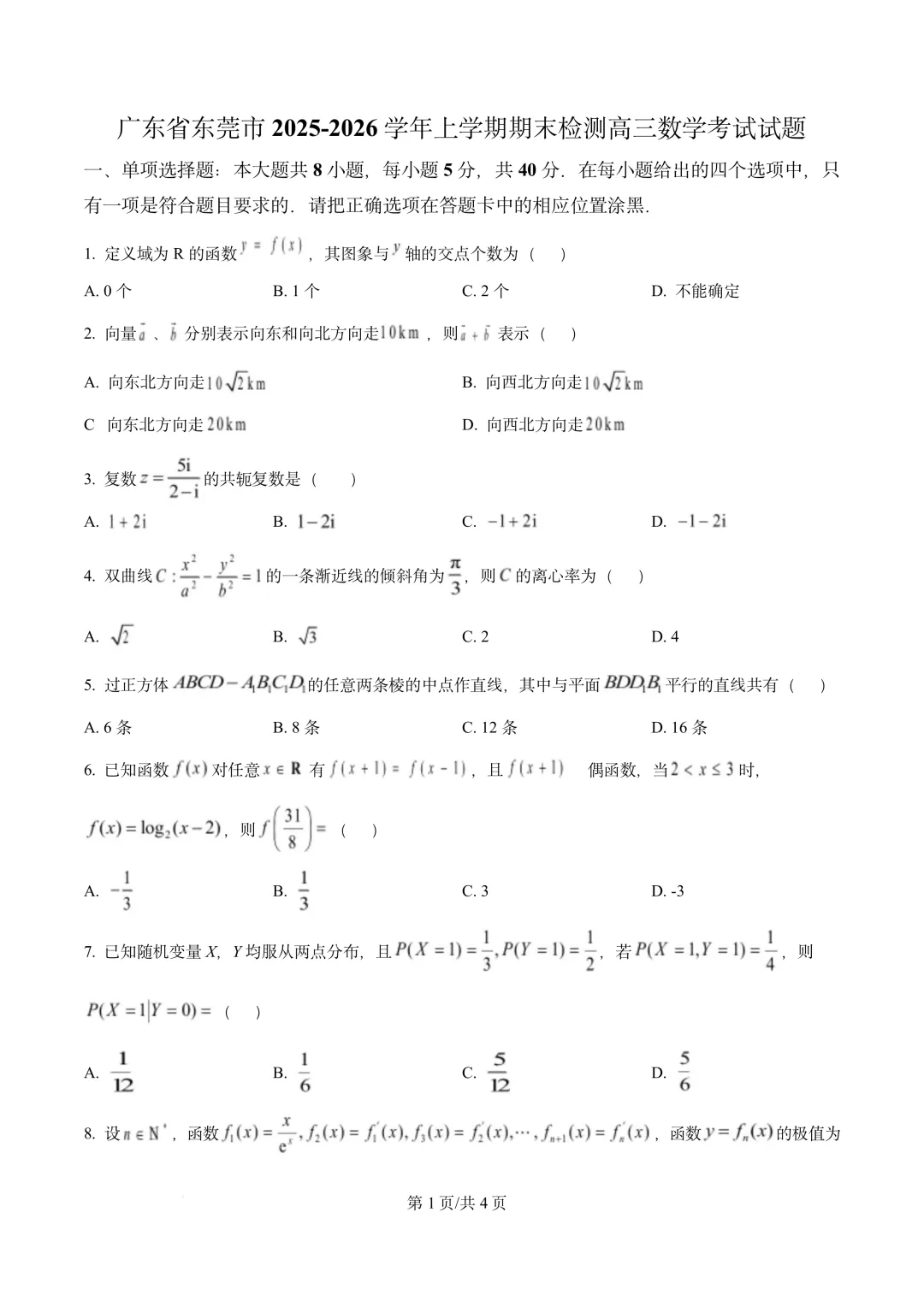 >广东省东莞市2026届高三1月调研考试数学