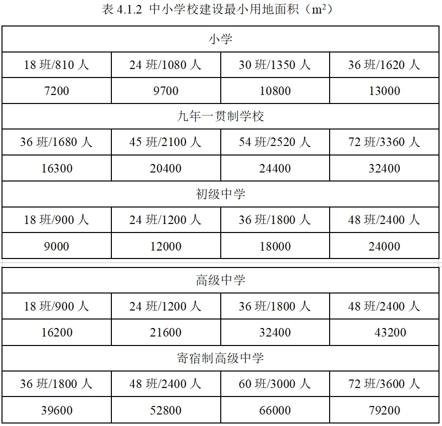 中小学校建设最小用地面积规定