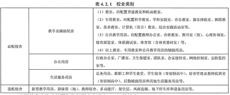 必配校舍:学校为满足课程设置方案和完成教学计划必须配置的校舍用房。