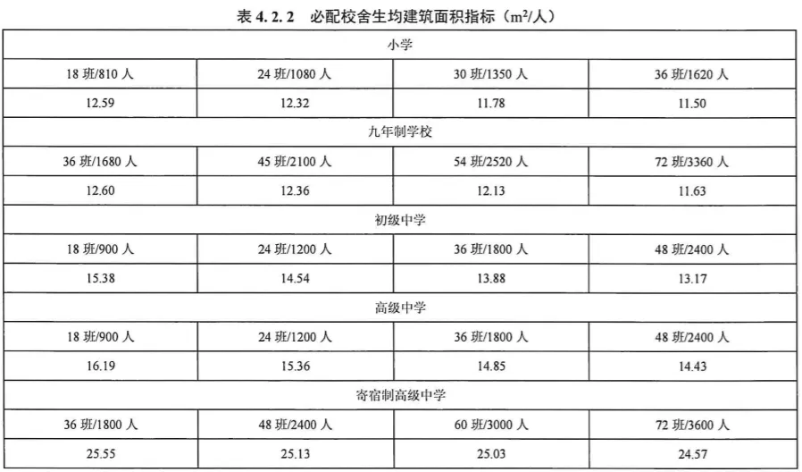 必配校舍生均建筑面积指标