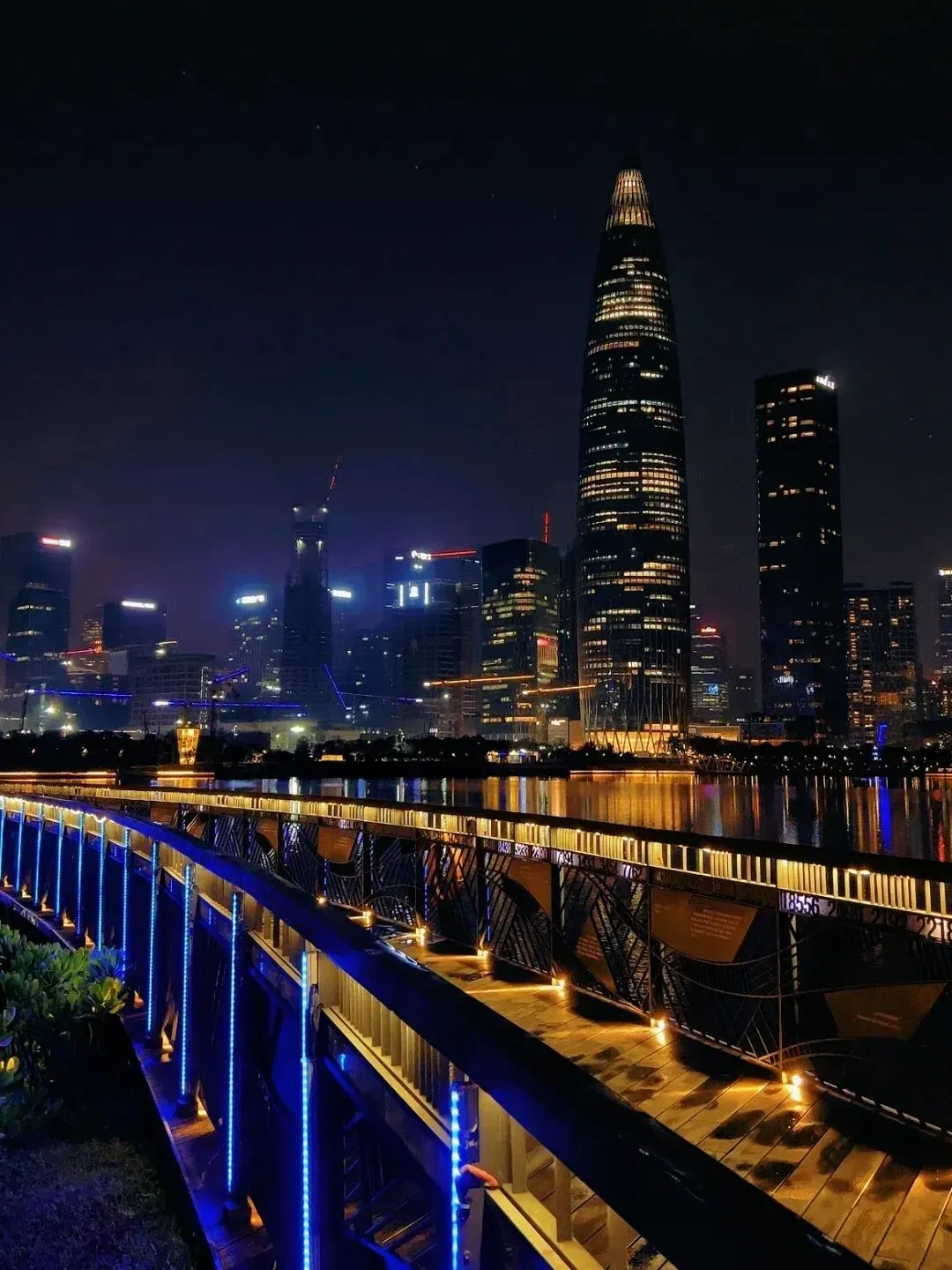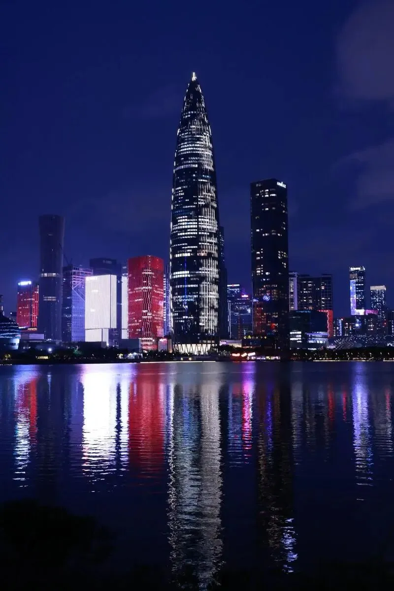 左手是深圳湾的海水,右手就是那几栋熟悉的地标——阿里中心、春笋、还有那几栋很有设计感的玻璃大楼。