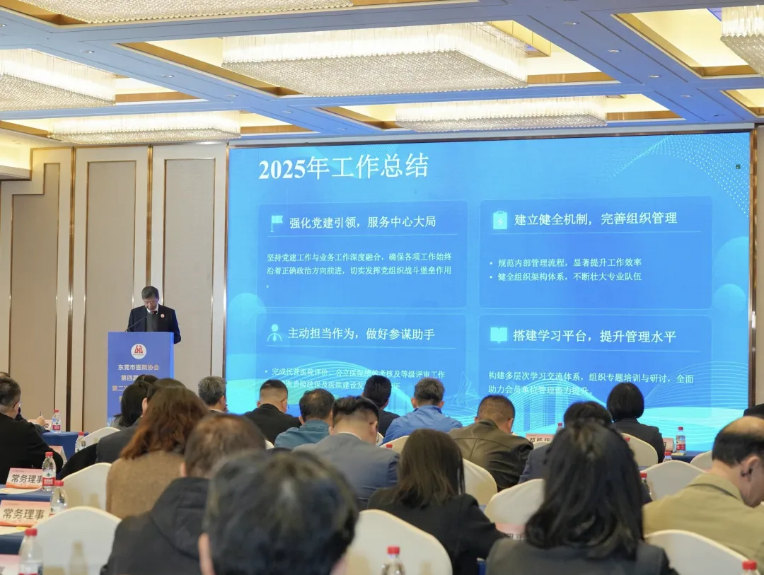 会上,邓皓辉会长对协会2025年度工作进行总结,并部署2026年度工作计划。他指出,2025年,协会紧紧围绕“品质医疗、温暖服务、守正创新、协调发展”的高质量发展思路,各项工作取得显著成效,扎实推进了满意度调查,二级综合医院等级评审,民营医院医疗质量和医疗服务评价,医院建设发展专项论证等重点工作,为推动东莞市卫生健康事业高质量发展作出了重要贡献。2026年,协会将以党建为引领筑牢方向,新增2-3个聚焦智慧医院、患者服务生态的专委会,修订评审标准、扩大医疗责任险覆盖、加强管理人才培育,持续践行“服务政府、服务行业、服务会员”宗旨。