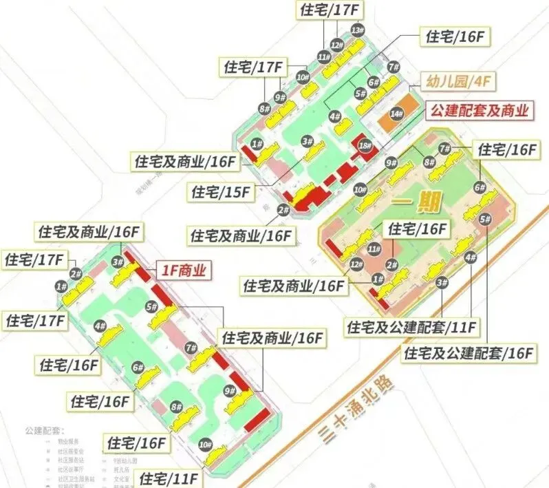 (6)建筑轮廓调整:2-4#2-5#2-6#、2-7#、2-8#、2-9#、2-10#、2-11#、2-12#、2-13#、2-15#、2-17#2-18#建筑轮廓调整 (微调)。2-1#、2-2#、1-5#基底面积调整。