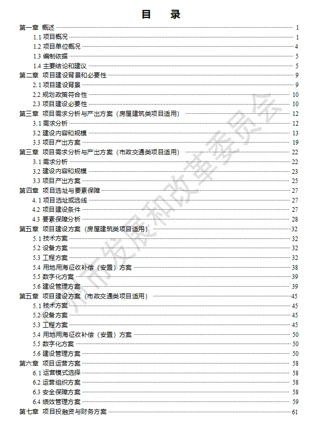 因各领域项目专业特点差异较大,本要点“项目需求分析与产出方案”和“项目建设方案”两章及其他小节中,明确了房屋建筑类项目、市政交通类项目两种类型的要求。其余未明确的项目类型,如排水管网、园林绿化、水利水电、轨道交通等,可根据相关领域的要求,参考本要点章节设置和具体要求,编写对应的内容。轨道交通场站综合体、片区基础设施建设等涵盖多个专业的综合性项目,视具体情况分别参照本要点市政交通类、房屋建筑类项目的要求编制。