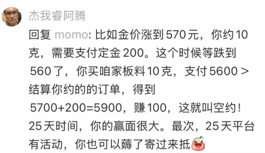 锁价交易则是消费者缴纳定金后,可以锁定当前贵金属价格,并约定一个期限后交易。期限到时,用户可以选择不提取实物,让平台按锁定价格回购,这样在黄金价格下跌时,可以赚取差价。