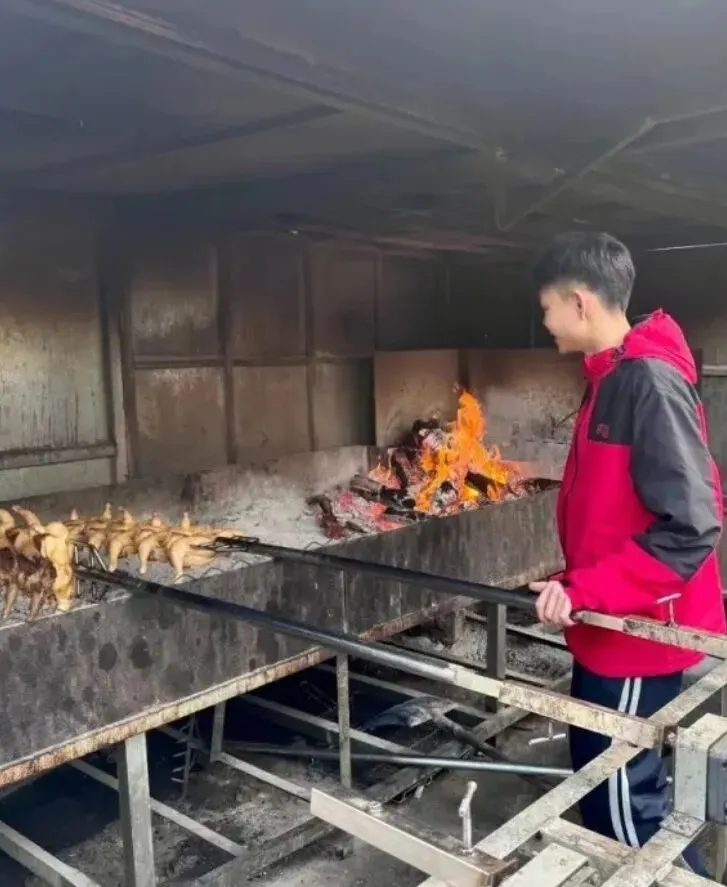 2022年,14岁的陈钟创来到深圳烤鸡店打工,经过三年努力学到了熟练的烤鸡手艺,17岁开始自己当老板经营烤鸡。