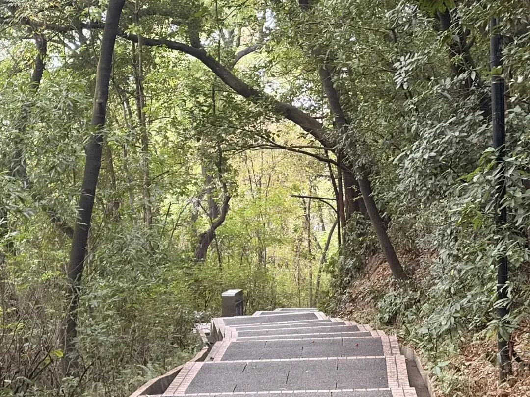 都说“冬至一阳生”,在南国,这“生”气便是满山不肯褪去的绿。石板台阶被雨水浸成深灰色,蜿蜒着隐入林子深处。两边是高大的树木,枝叶交错,搭成一条幽深的廊。空气清冽得很,吸一口,那股带着青草和泥土味的冰凉便直透进肺里。