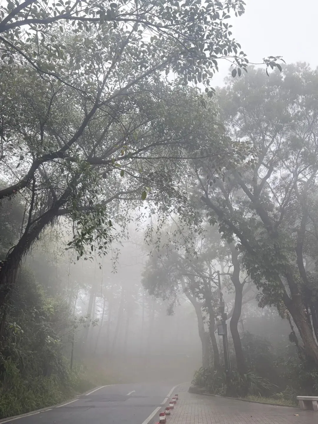 清晨,六点钟,雨已经下着了。从白云山南门进去,踏上湿漉漉的城建南路,山便用它全部的幽深将我包裹。风穿过林子,声音是窸窸窣窣的,带着清冽的、混合了腐叶与泥土的气息。
