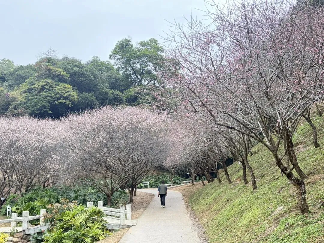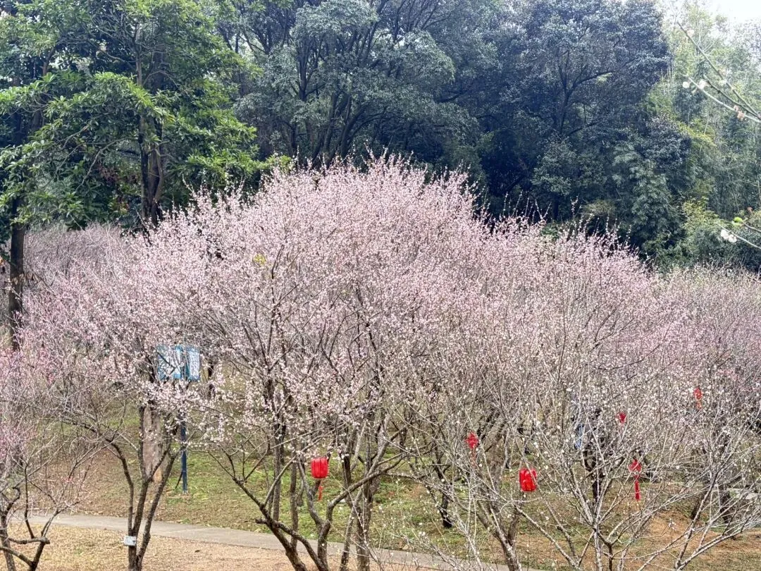 林间空地上,那块白底黑字的诗牌便显得格外醒目——“梅须逊雪三分白,雪却输梅一段香”。此刻无雪,这“一段香”却真真切切,是这清冷空气里最固执的魂灵。它不扑面而来,是你走着走着,它自己幽幽地钻进你肺腑里去的。比起桃花谷那预告春日的、轻快的明媚,这里是一种落幕时的、深沉的静美。花期确乎是过了,但这趟寻觅并未落空。桃花是开场锣鼓,热闹鲜明;这将尽的梅,便是戏罢后萦绕不散的余韵,清冷,真切,让人在蓦然回首的灯火阑珊处,品咂出更悠长的滋味。