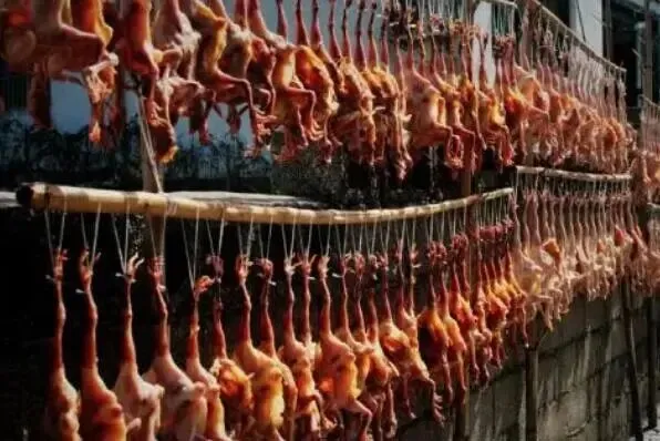 松岗腊鸡是一道因产自深圳市松岗区而得名的腊鸭,是主要选用梧州、土媚、本地等品种鸭进行制作的深圳著名特产美食,并因皮白肉厚、细嫩香口、营养丰富而闻名海内外的深圳特产美食。