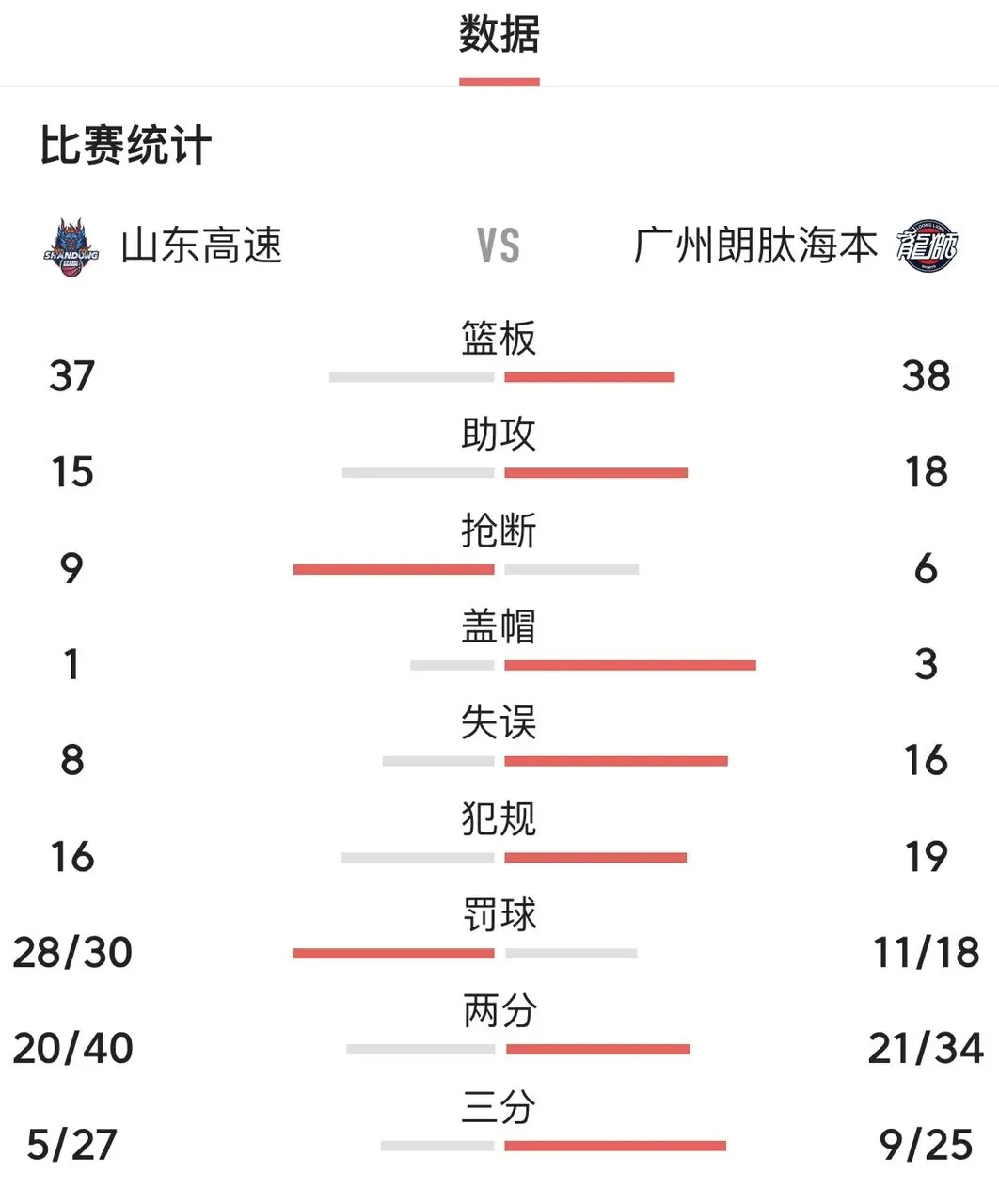 山东队珀赛尔23分,克里斯17分,陶汉林16分,高诗岩14分。