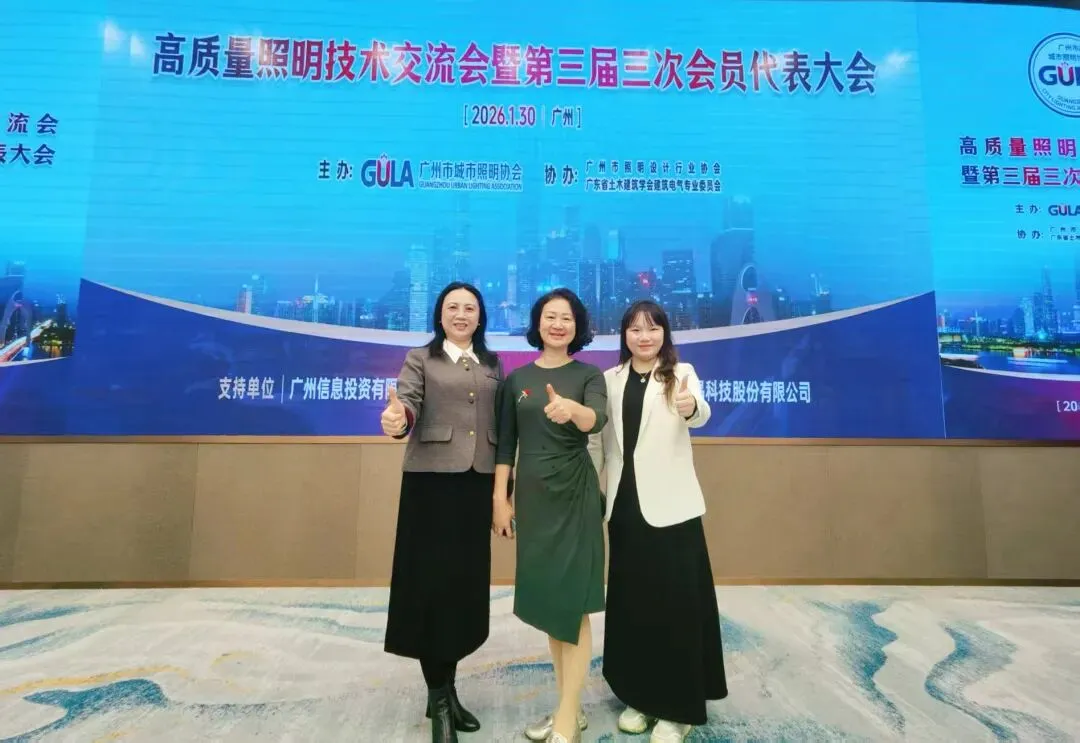 2026年1月30日,广州市城市照明协会高质量照明技术交流会暨第三届三次会员代表大会在广州顺利召开。东莞市城市照明协会副会长周婉文(东莞市沐光云智能家居有限公司总经理)及副秘书长温子慧受邀出席本次庆典。