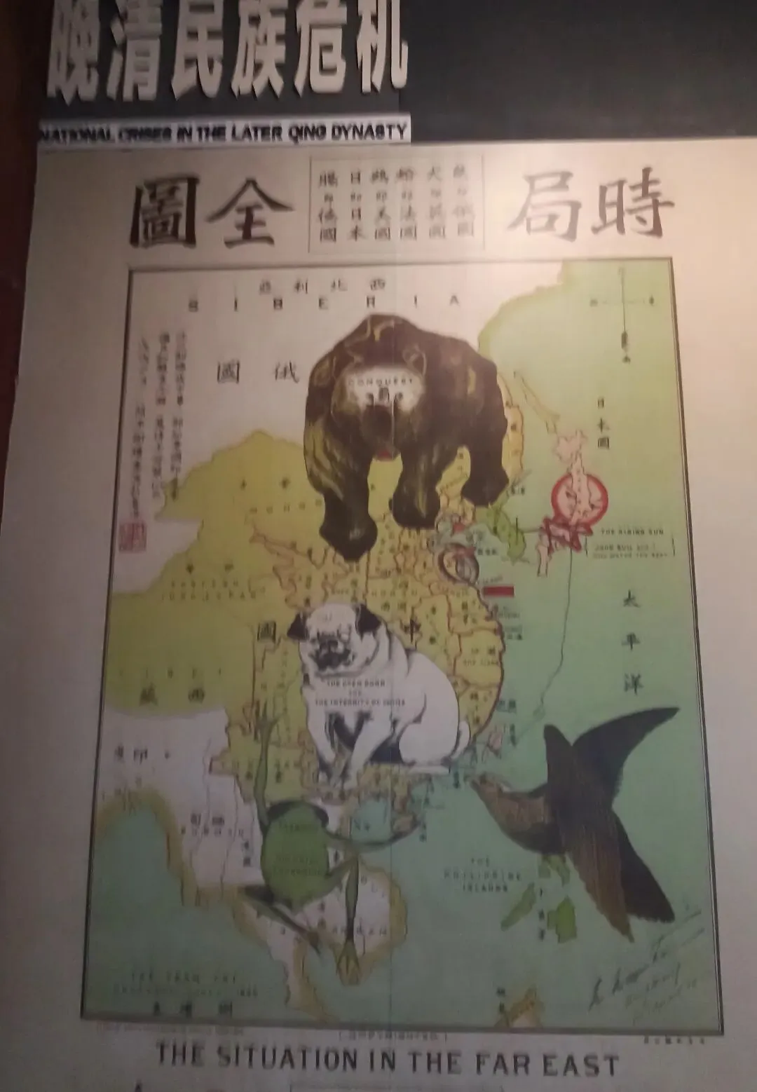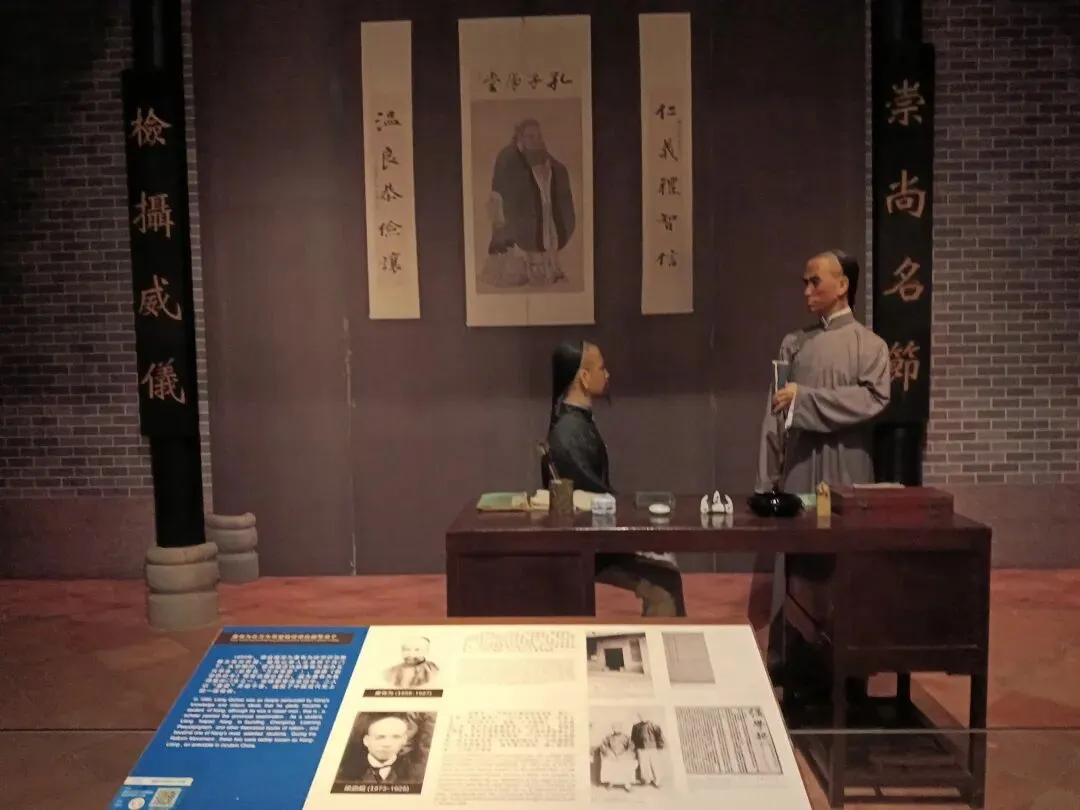 在纪念馆二至三层设有《开辟共和新纪元》——辛亥革命主题展,分为序篇:晚清民族危机。鸦片战争和一系列不平等条约的订立,使中国社会发生了根本的变化。晚清政治腐败、社会动荡,特别是在鸦片战争后,中国逐渐沦为半殖民地半封建社会。