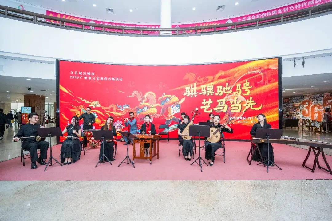 启动仪式上,群舞《奔腾》《盛世敦煌》以灵动鲜活的姿态,舞出气势如虹的“龙马精神”。杂技《一马当先》无惧挑战的精彩演绎,传递积极向上、拼搏进取的正能量。市民群众和艺术家合唱《我和我的祖国》彰显家国情怀,嘹亮的歌声引发观众的共鸣。诗朗诵《这一年,我们一起走过》深情回顾广州文艺2025年砥砺奋进的历程,多元呈现这座花城在文艺高质量发展上的蓬勃活力。
