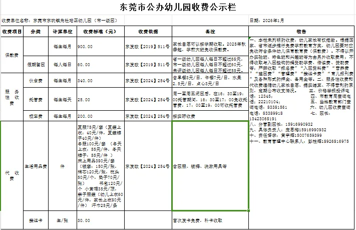 为了让大家更清楚地了解幼儿园收费标准,我园依据东莞市《关于加强学校教育收费公示管理工作的通知》的相关要求,特将收费标准公示如下: