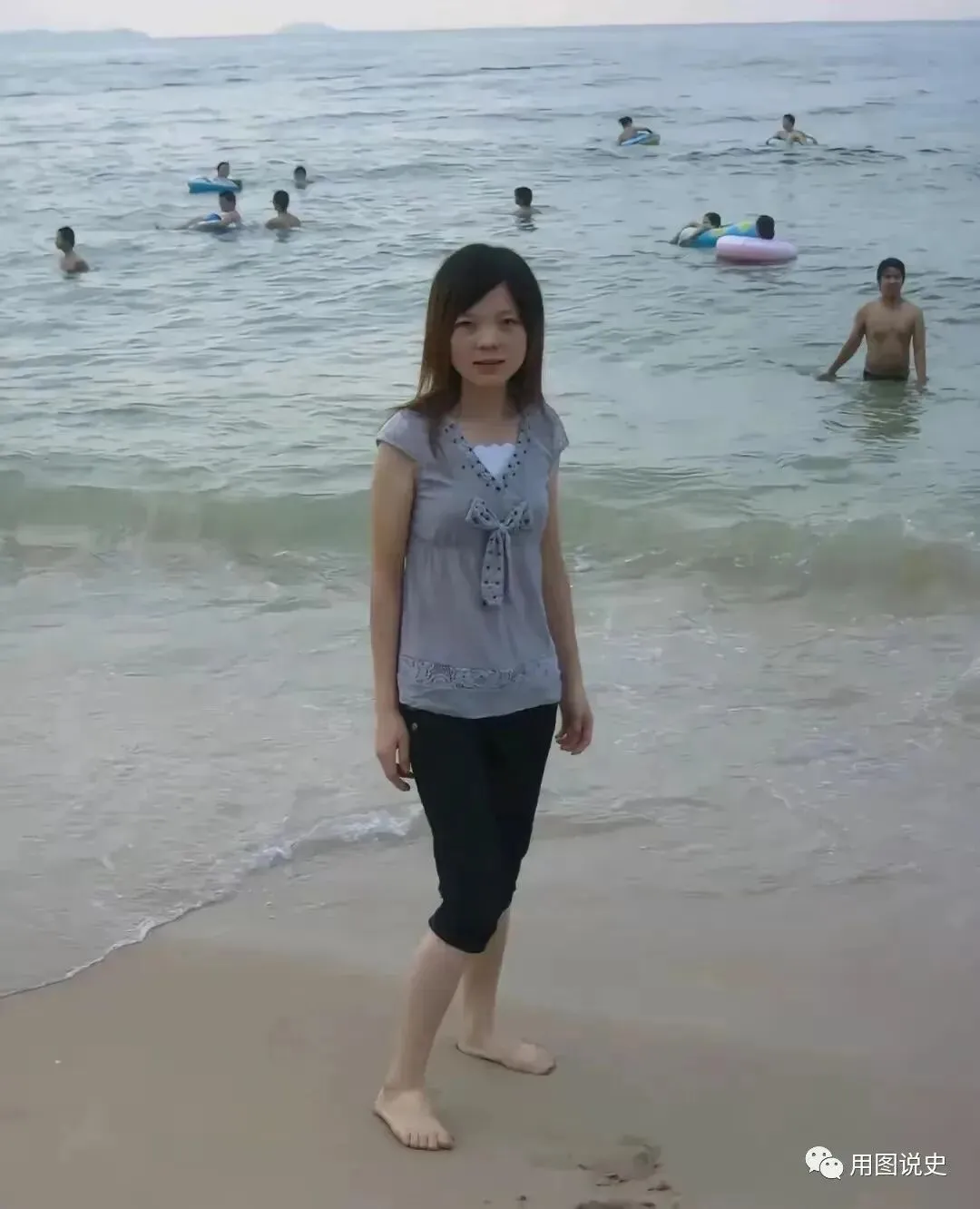 3.2007年,来自湖南省岳阳市的20岁姑娘小美在深圳南澳沙滩游玩时的留影。