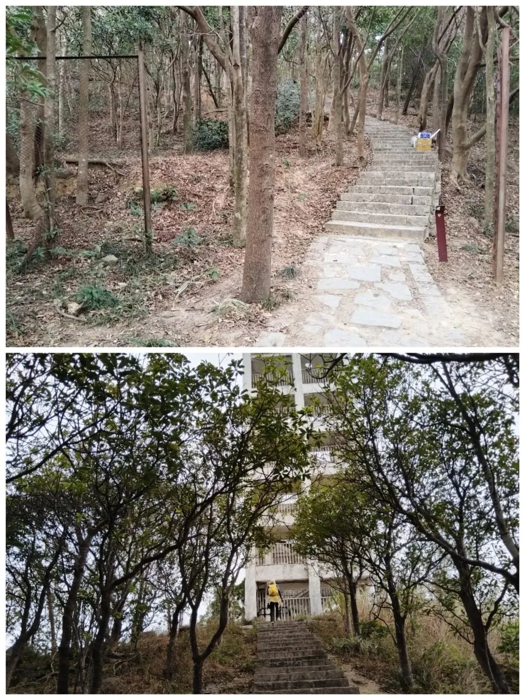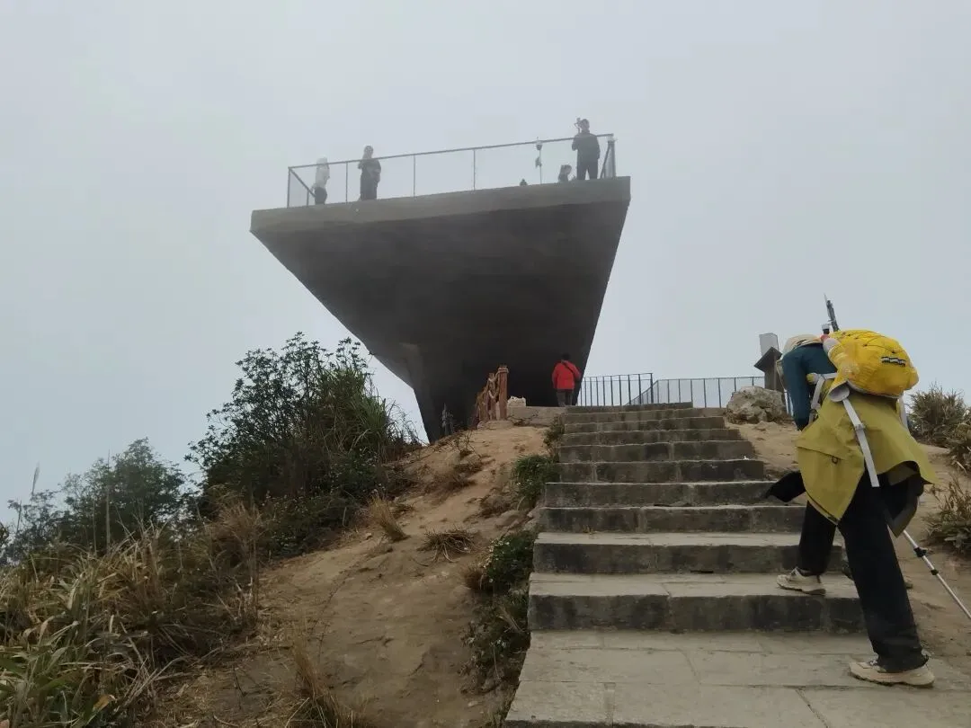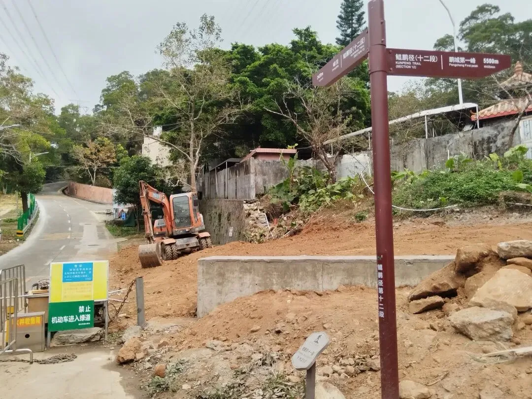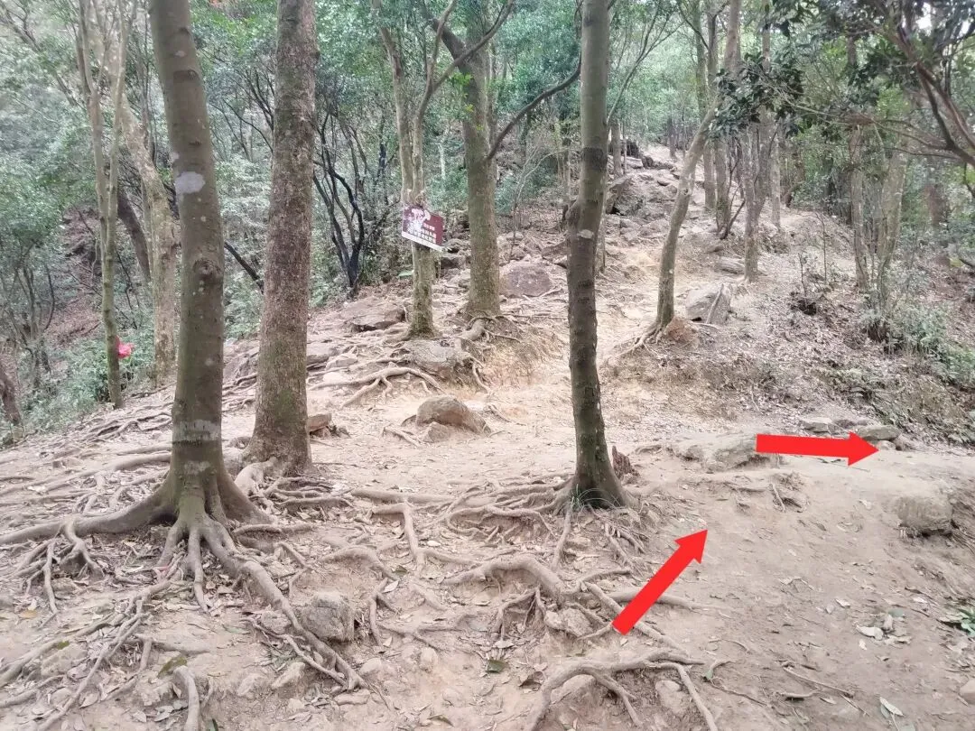 当然我能果断行动,主要还是来自某位山友的发帖约伴同行,当日9:30我们一群10人相约自横排岭公交总站准时出发,从梧桐山河源头的横沥口水库旁边的登山口前往百年古道山脊线。沿着山脊土路缓缓而上,走走停停,故意放慢速度,只为了等候两位落后分子,没想到我们从海拔高度为777米的岔口,走捷径斜切到正规蹬道,又等了有近二十分钟,才终于见得她俩吭哧而至。后来登顶时发觉大梧桐之巅的气温只有十多度,冷得我们无法久留,因此在“鹏城第一峰”打卡拍照后,我们便赶紧径直从攀云径先后疾行而下。下到山脚的绿道后,我们没有按鲲11的路线翻越梅香岭,而是沿着爬升较少的绿道途经驿站卫生间前往谭仙公庙(鲲11与鲲12的分界处)。后面沿着鲲12的路线翻过嶂顶,我们也在低处提前切到绿道上,并在前方拐弯处从“木瓜小道”上端走捷径直接爬到蓄能上库的库坝路面。沿着库坝前往登山口,离开库坝后,我们只用了半个多小时就登上了第三峰梅沙尖的观景台。与梧桐顶类似,这里也是“风吹冷气”,逼得我们只能赶紧下山。沿着石阶下到靠近云海广场的瞭望塔附近时,我认出了十多年前由此上行往梅沙尖的拦道铁丝网,竟然还清晰可见,让人觉得既亲切又沧桑。过了瞭望塔,沿着“云海5线”下行,其终点便是地铁8号线的盐田墟站,自此归去,倒也甚为便捷。沿着这样的路线连走梧桐山和梅沙尖,总长约为20公里,累计爬升约为1650米,以前我总觉得难度有些大,不敢尝试,这一次因为天气很给力(凉爽又不晒),前两三个小时又歪打正着(等候队友的过程中保存了足够的后劲),加上队友的相互鼓劲,最后我竟然完成得貌似很轻松。看来“路虽远,行则将至”,这话有时还真的是至理名言呢!