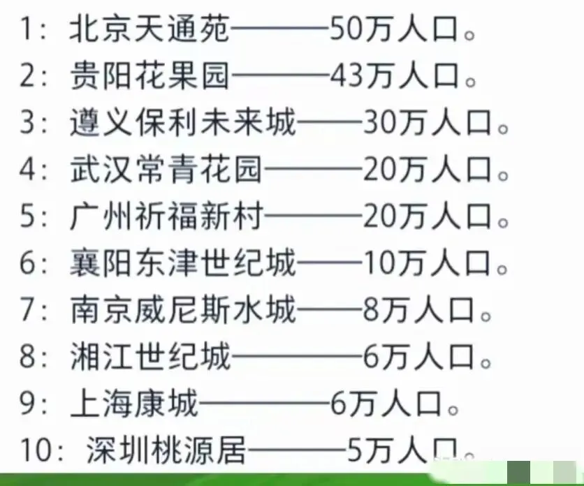 这份全国十大巨无霸小区名单,不仅是一组居住人口数据,更是不同城市发展阶段、住房策略与城镇化路径的生动镜像。