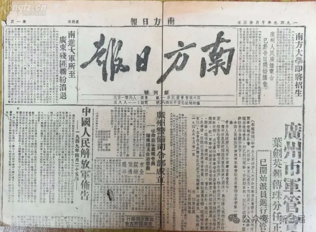这一天,是广州解放后的第9天:1949年10月23日。这支平均年龄只有二十七八岁的年轻队伍,斗志昂扬,干劲十足,白天在办公室工作,晚上在办公室打地铺,日以继夜地出报,向社会传播新政权最权威的消息。