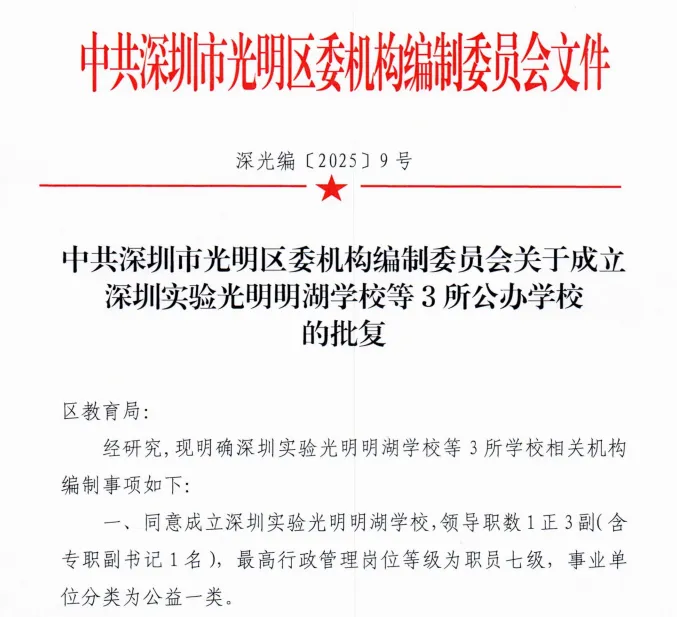 4月25日,深圳实验光明明湖学校正式批复成立。
