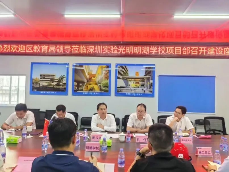 5月13日,光明区委教育工委书记、区教育局党组书记、局长黄汉波一行莅临我校考察调研,召开明湖学校工程建设各方座谈会。