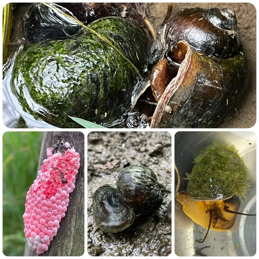 ▲上图:福寿螺和它的卵块。©海潮天下(Marine Biodiversity)