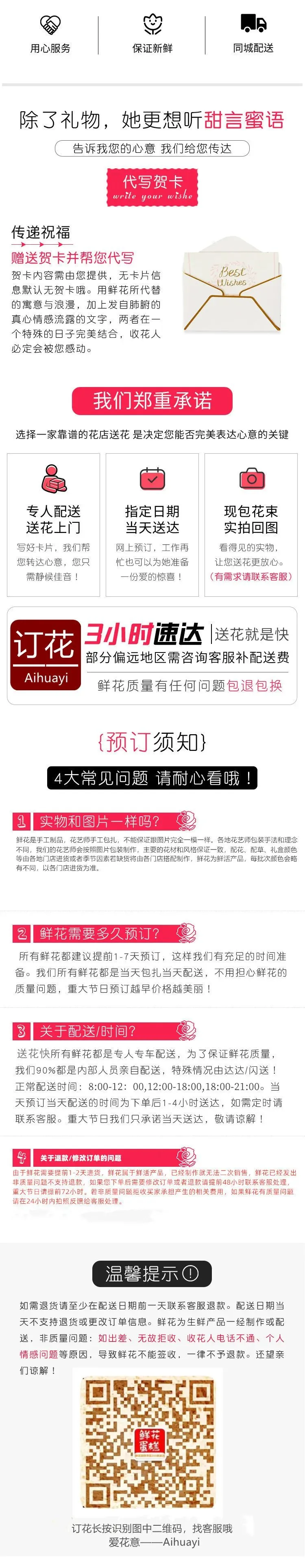 在尚花客东莞市高埗镇鲜花店,我们始终坚信“鲜花是生活的调味剂”。它能够让我们的日常生活变得更加丰富多彩,也能够让我们的情感表达更加真挚和深刻。因此,我们会一直秉承着“用心做花,用爱传递”的理念,为每一位客户提供最优质的鲜花和服务。