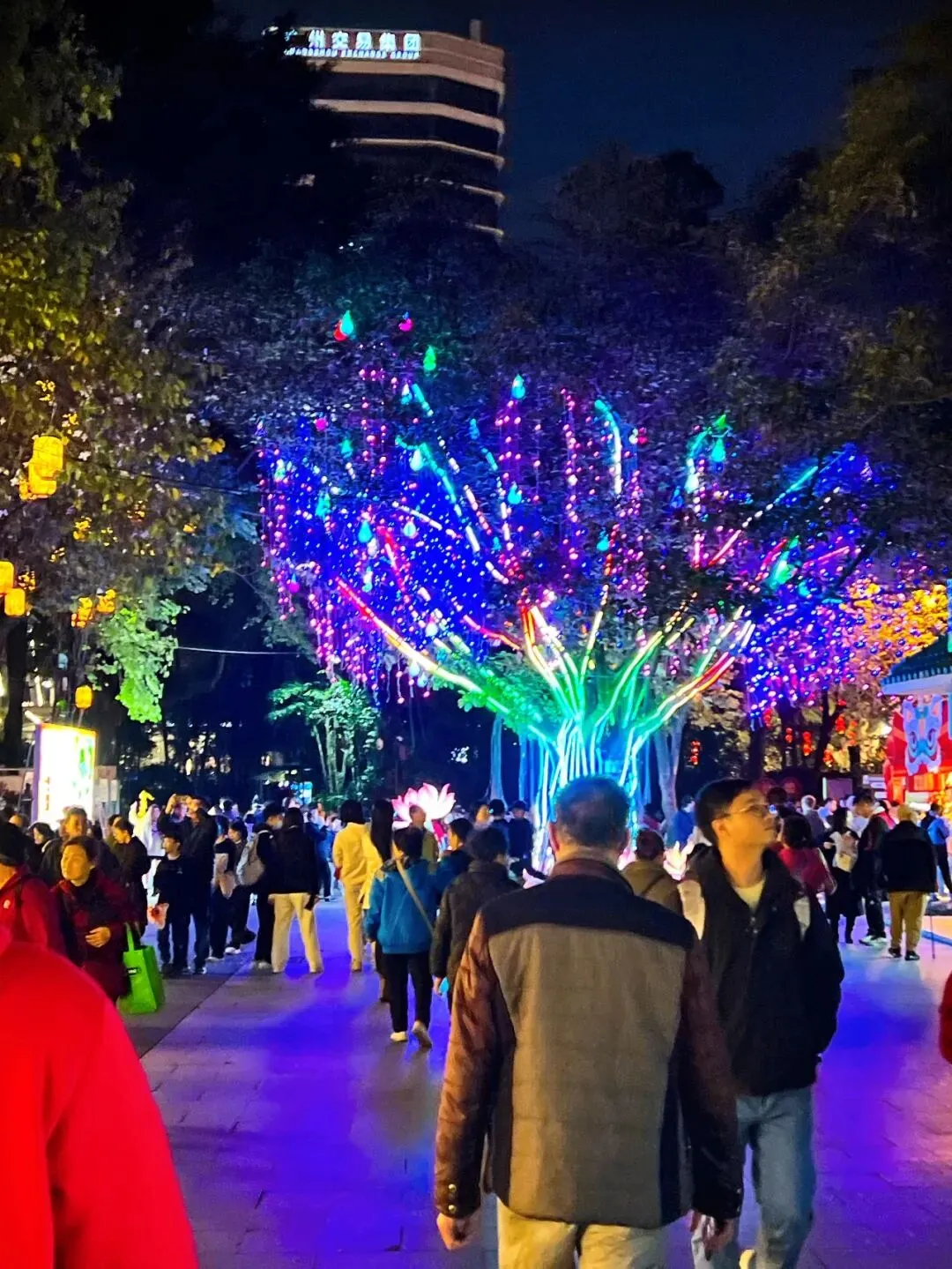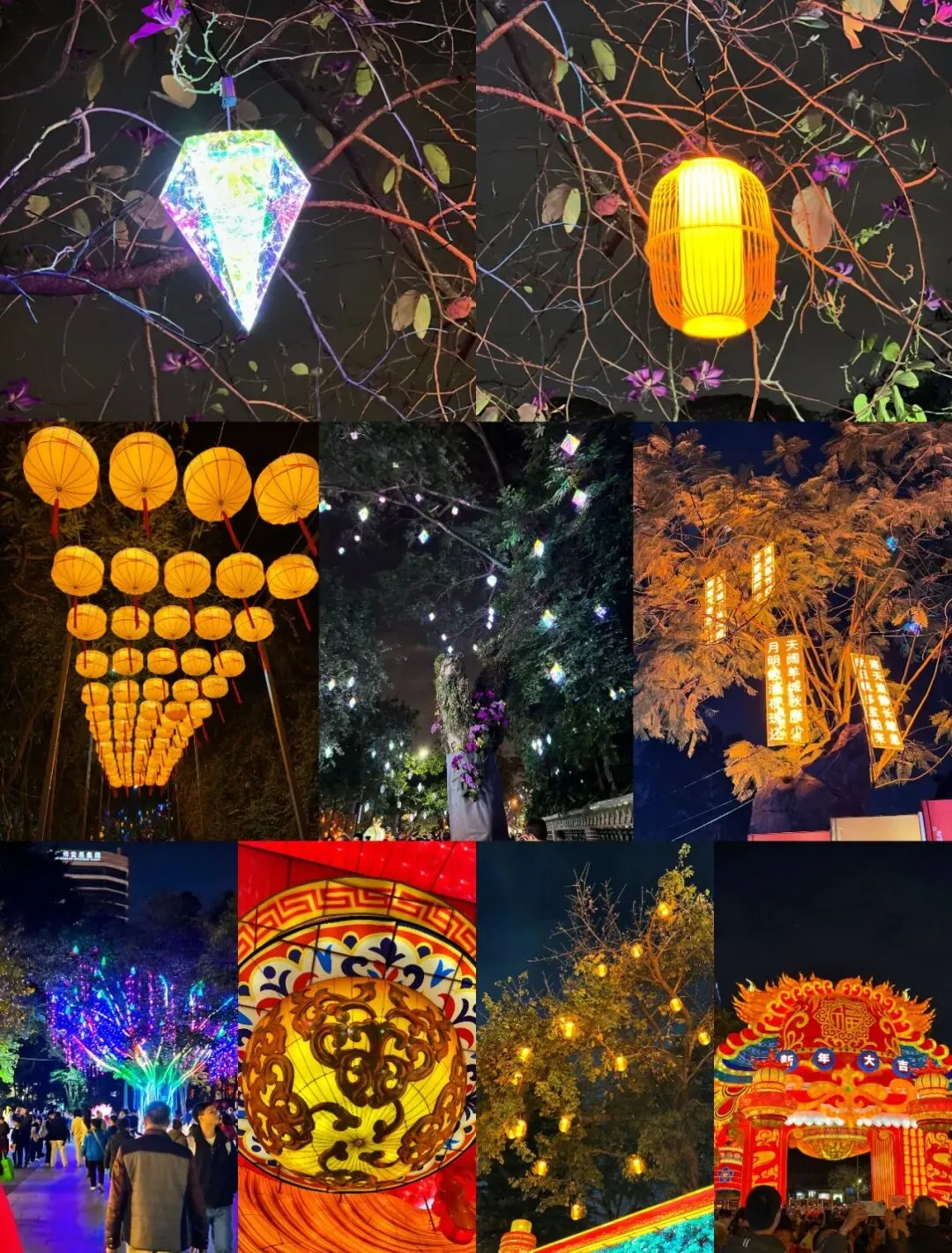 ——枝头挂满各式灯盏,竹编暖黄灯、璀璨星光灯、灵动生肖灯缠满枝桠,灯光穿叶洒下碎光,梦幻感直接拉满。趁夜色冲这场光影局,跟着我的游玩动线走,手把手教你解锁2026广州最出片的新春打卡地!